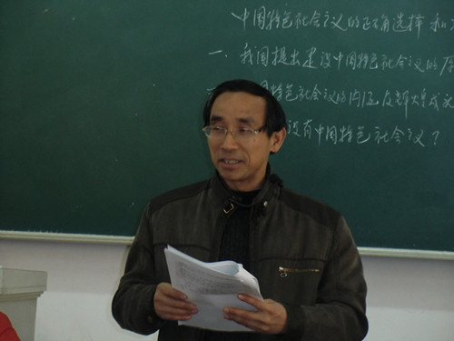 刘小茂老师报告的主题为:建设中国特色社会主义。他分别从我国提出建设中国特色社会主义的原因(历史原因、现实原因)、中国特色社会主义的内涵和辉煌成就(中国特色包括道路、理论、制度特色)及怎样来建设有中国特色社会主义(坚定不移走中国特色道路、有忧患意识、有世界眼光)等三个方面来讲解了建设有中国特色社会主义的正确选择和光明前景。