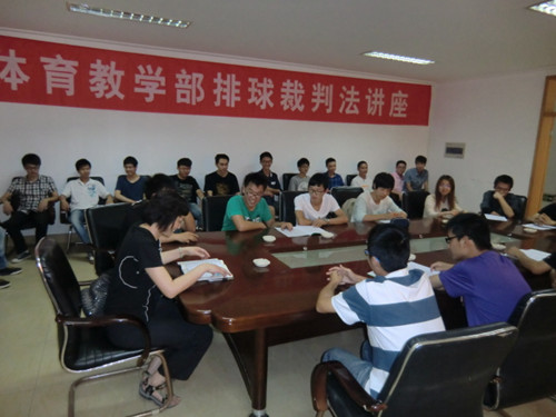 在我校2013年“常工杯”学生排球赛开赛之前,为适应新的排球规则和比赛办法,提高我校排球运动和学生裁判的整体水平,丰富校园体育文化生活,推进体育文化节的深入开展,校男子排球队教练、本届排球比赛副裁判长许燕敏副教授在体育馆会议室作了“排球规则与裁判法”专题讲座。来自校排球协会成员、常工杯排球学生裁判员及排球爱好者参加了本次讲座。
