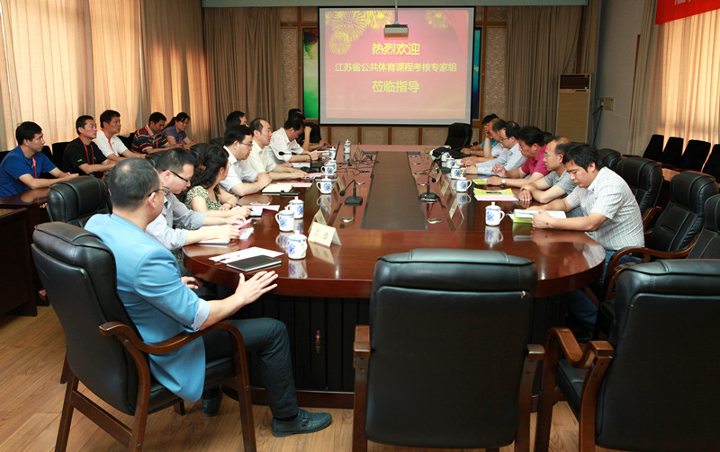 5月22-23日,江苏省普通高校公共体育课程考核组莅临我校对我校公共体育课程进行考核。专家组由淮阴工学院副院长吴建华教授任组长,成员包括河海大学体育系主任王建民教授、原江苏师范学院体育学院院长张沛林教授、徐州工业职业技术学院体育部主任叶鹏教授、苏州工业职业技术学院体育部主任刘晓教授和省教育厅体艺卫处邱庸峰。