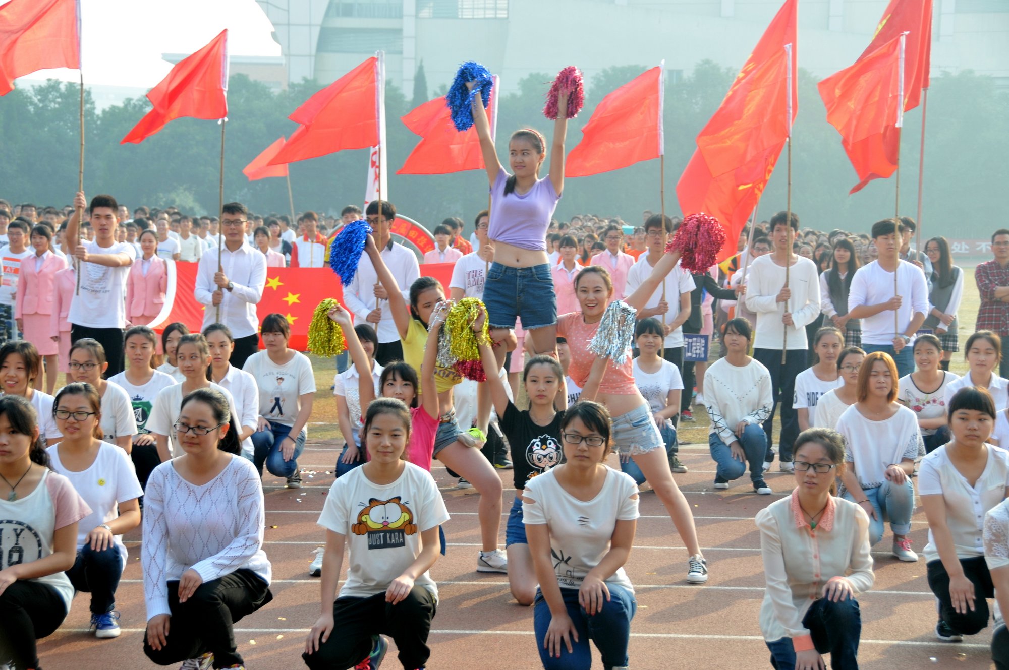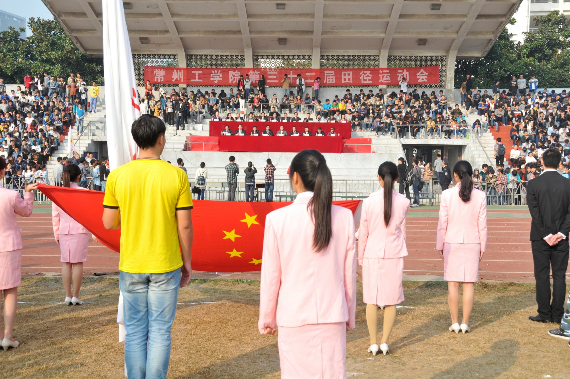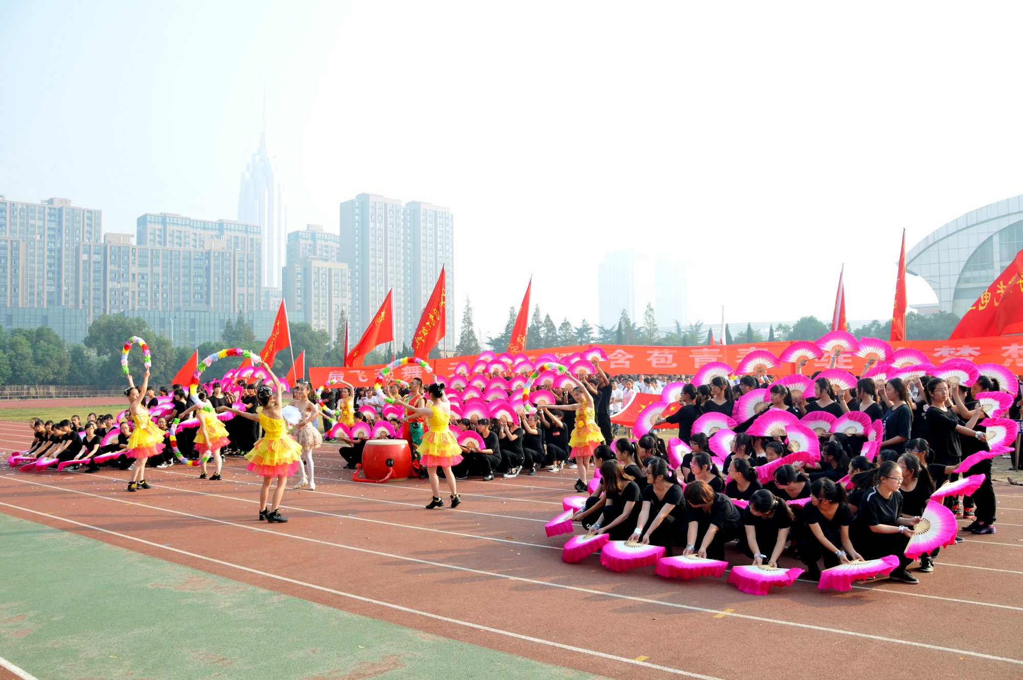 喊着铿锵有力的口号,迈着雄健自信的步伐,以响亮的进行曲为衬,国旗护卫队、校旗队、彩旗队组成的先导方阵与我校12个学院方阵代表队逐一步入体育场并接受大会主席团检阅。今年,各二级学院方阵将青春活力与创新精神相融合,同时又不失时尚与潮流。电子信息与电气工程学院方阵伴着网络神曲《小苹果》的音律翩翩起舞,欢快的歌曲昭示着电气健儿的活力与激情;计算机学院方阵学生身着黄蓝两种颜色的上衣,入场时,由黄色上装的学生组成“I”“T”字符,经过主席台时,蓝色上装的学生组成WiFi标志,让在场的人们眼前一亮;人文社科学院方阵以“国庆六十五周年”为主题,配以激情昂扬的啦啦操,34块红色方格纸拼出六十五的字样,展现当代大学生青春似火、热情洋溢的精神面貌;艺术与设计学院方阵以“强身健体,励志成才,艺术强校,艺术强国”为口号,方队中全体女生身穿民国时期的学生服装,手捧书本,佩戴校徽,展现她们对知识的追求,对学校和国家的热爱;师范学院将鼓与舞蹈相结合,靓丽的服装配合矫健的身姿,敲出了时代最强音;延陵学院的方阵由学院入党积极分子和党员组成,热血、激情的常工学子带着属于他们的魅力,赢得全场的掌声。各具特色的队形变换与极富特色的舞蹈为全校师生上演着视听盛宴。