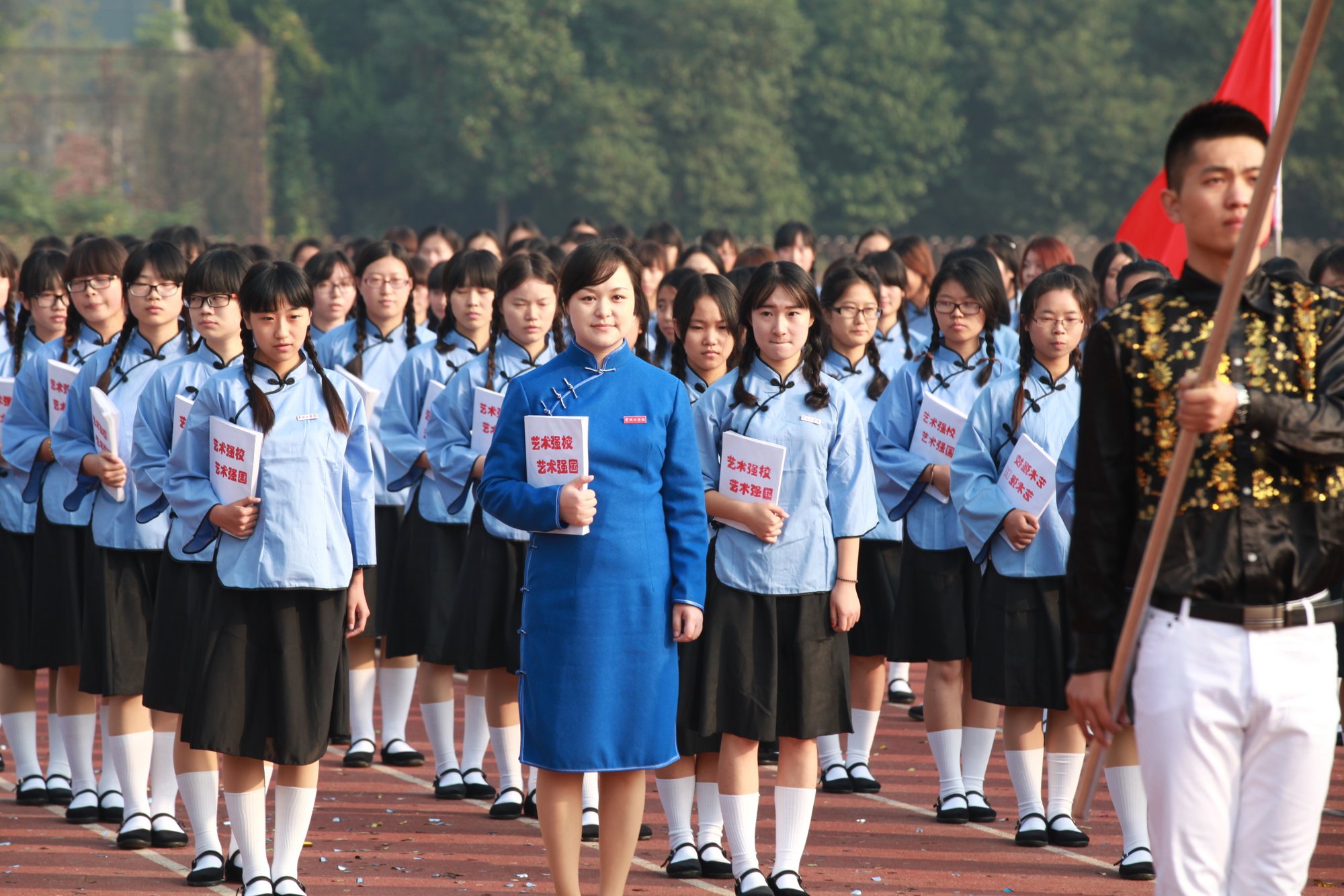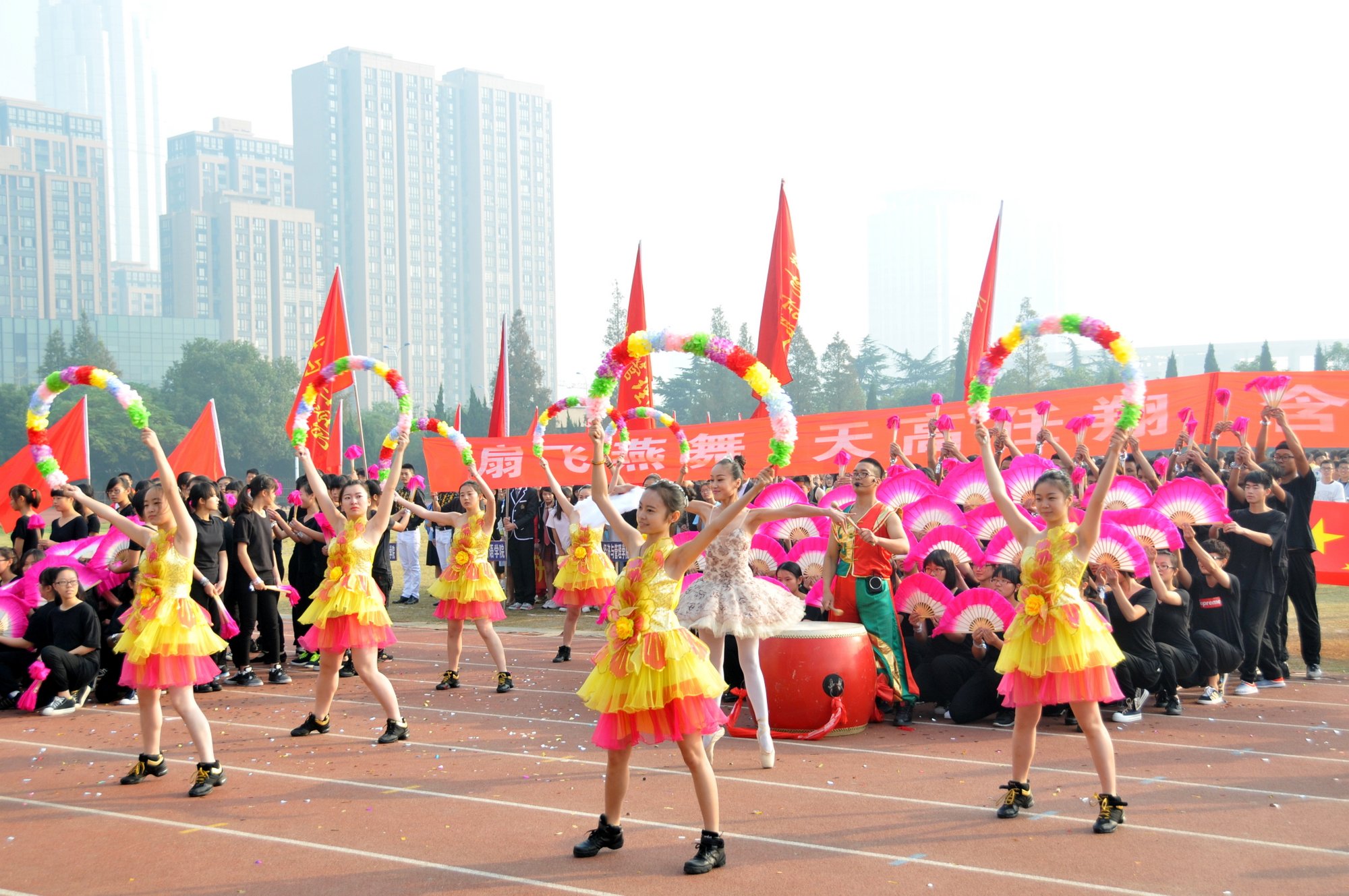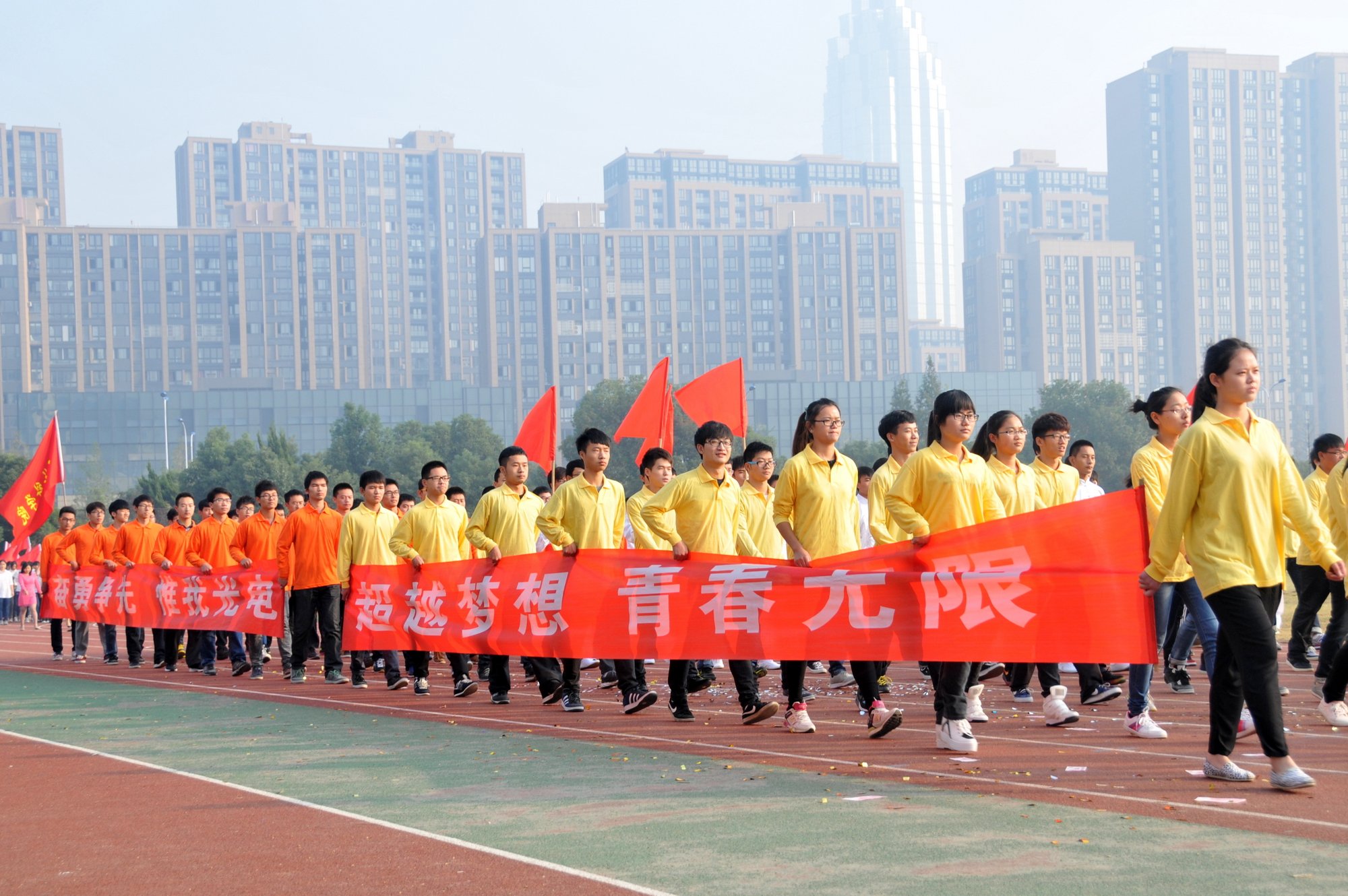 喊着铿锵有力的口号,迈着雄健自信的步伐,以响亮的进行曲为衬,国旗护卫队、校旗队、彩旗队组成的先导方阵与我校12个学院方阵代表队逐一步入体育场并接受大会主席团检阅。今年,各二级学院方阵将青春活力与创新精神相融合,同时又不失时尚与潮流。电子信息与电气工程学院方阵伴着网络神曲《小苹果》的音律翩翩起舞,欢快的歌曲昭示着电气健儿的活力与激情;计算机学院方阵学生身着黄蓝两种颜色的上衣,入场时,由黄色上装的学生组成“I”“T”字符,经过主席台时,蓝色上装的学生组成WiFi标志,让在场的人们眼前一亮;人文社科学院方阵以“国庆六十五周年”为主题,配以激情昂扬的啦啦操,34块红色方格纸拼出六十五的字样,展现当代大学生青春似火、热情洋溢的精神面貌;艺术与设计学院方阵以“强身健体,励志成才,艺术强校,艺术强国”为口号,方队中全体女生身穿民国时期的学生服装,手捧书本,佩戴校徽,展现她们对知识的追求,对学校和国家的热爱;师范学院将鼓与舞蹈相结合,靓丽的服装配合矫健的身姿,敲出了时代最强音;延陵学院的方阵由学院入党积极分子和党员组成,热血、激情的常工学子带着属于他们的魅力,赢得全场的掌声。各具特色的队形变换与极富特色的舞蹈为全校师生上演着视听盛宴。
