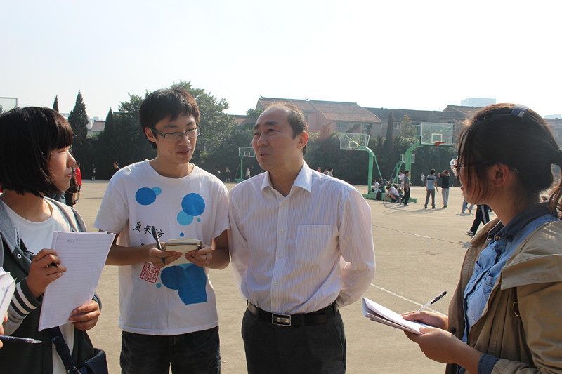 校报学生记者在教工男子保龄球预决赛上采访了校长李文虎。他矫健的身姿、娴熟的技术,展现了一位学者、教授、领导之外的另一个身份——运动健儿。他不仅参加了保龄球的比赛,还参加了教工组男子跳远比赛并获得了第三名的好成绩。他强调:“体育运动一直都是国家高度重视的方面,尤其像学校这样的青年人聚集地,开展体育活动尤为重要。”他表示:“每天锻炼一小时,健康生活一辈子。校领导亲身参与校运动会能发挥示范作用,激发师生的运动热情,更好地提升学校的运动氛围。同学们要重视早锻炼,通过运动更好地促进学习、生活、工作。”