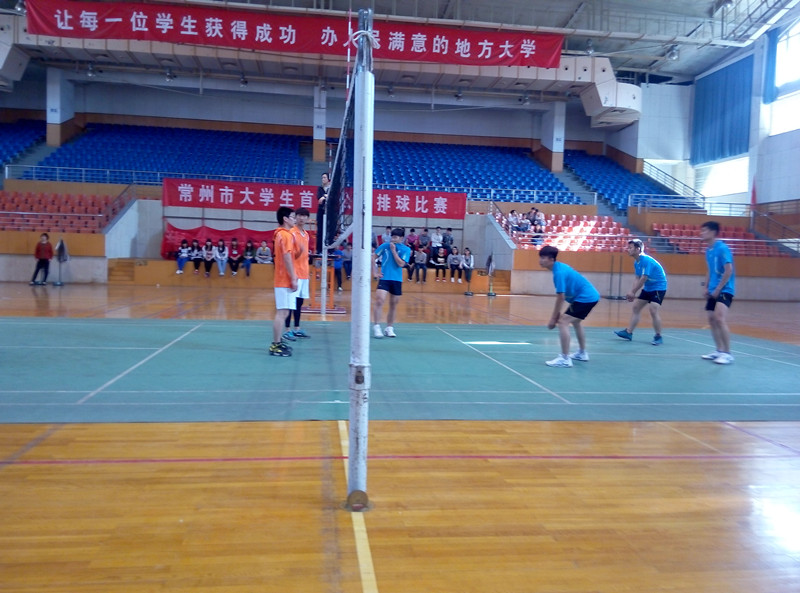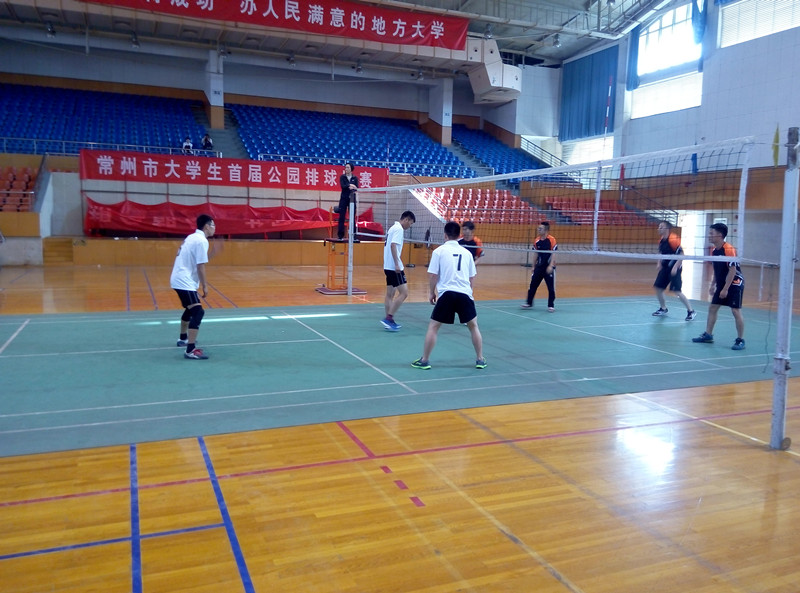 4月23日,由常州市排球运动协会和常州市大学生体育协会共同主办、常州工学院承办的2015年常州市大学生首届公园排球赛在常州工学院体育馆正式拉开帷幕。本次比赛共有来自常州大学等6所在常高校的10支男女球队报名参赛。此次比赛采用中国排球协会审定的“(2013-2014年)中国公园排球(四人制排球)竞赛规则”;比赛分男女组,采用单循环赛制。